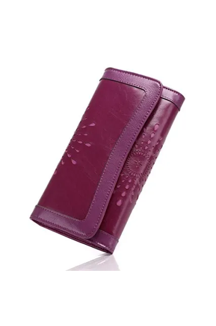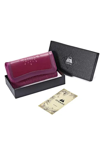 OURBAG Women Leather Wallet Clutch Purse Card Holder Ladies Hollow Out Long Wallet