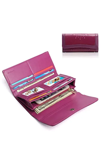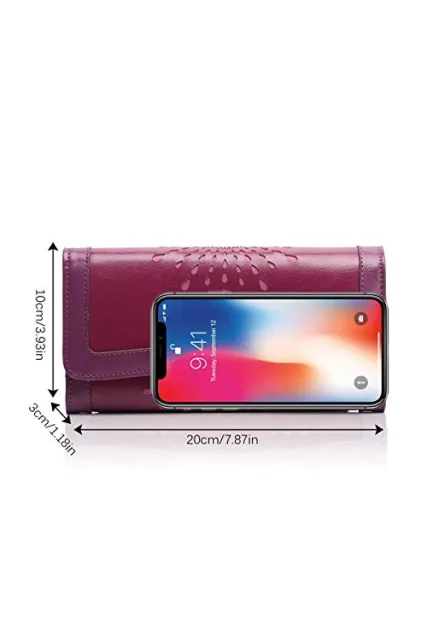 - ✔【STRUCTURE】This wallets for women has 8 credit card slots, 2 bill pockets,1 zipper pocket, Plenty of room, provides a lot of room for cards, money, phone, ID card/ Driver license, coins etc. Dimensions: 7.48 x 1.18 x 3.93 inch. Great for phone fits inside.