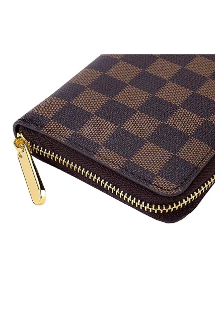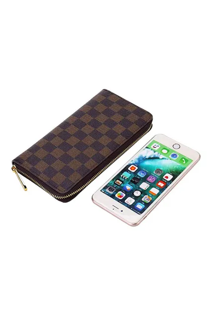 - DESIGN: Classical Checkered Design, Zipper closure is safer.RFID Blocking with card holder organizer.