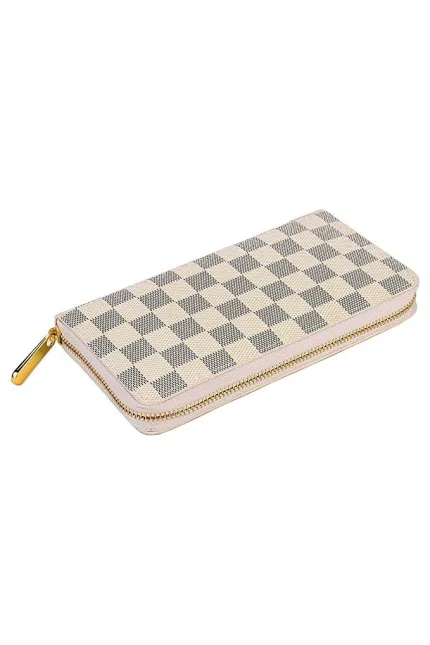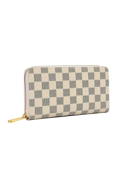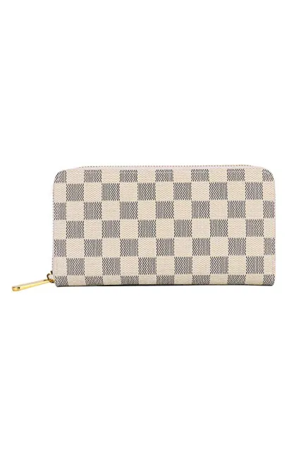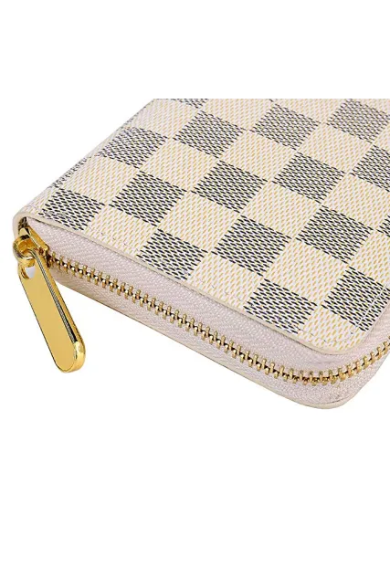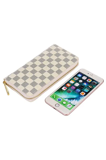 - DESIGN: Classical Checkered Design, Zipper closure is safer.RFID Blocking with card holder organizer.