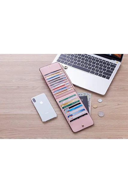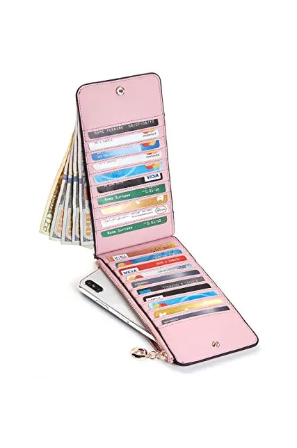 Toughergun Womens RFID Blocking Genuine Leather Multi Card Organizer Wallet with Zipper Pocket