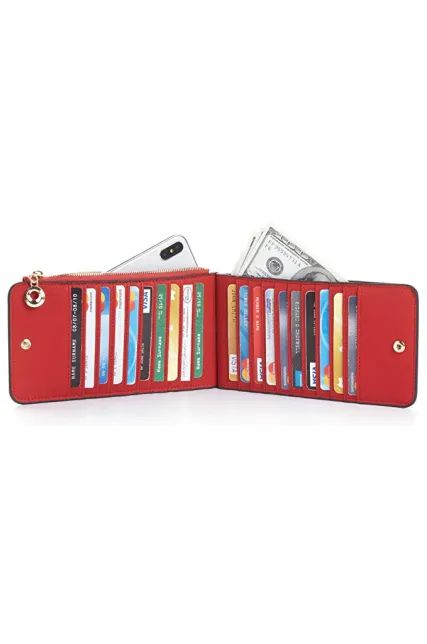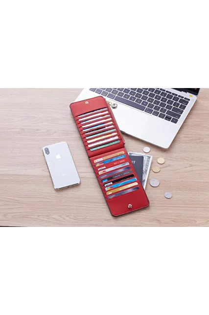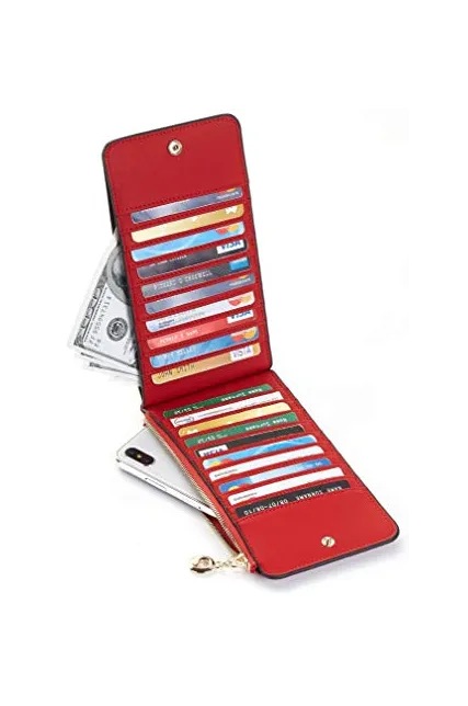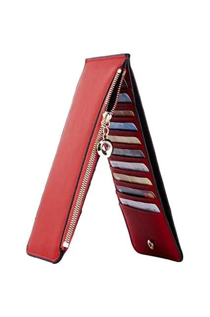 Toughergun Womens RFID Blocking Genuine Leather Multi Card Organizer Wallet with Zipper Pocket