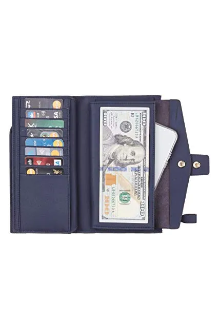 Travelambo Womens RFID Blocking Large Capacity Luxury Waxed Genuine Leather Clutch Wallet Multi Card Organizer
