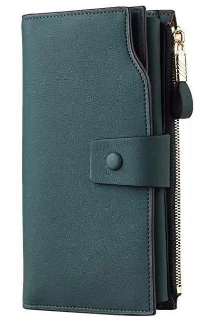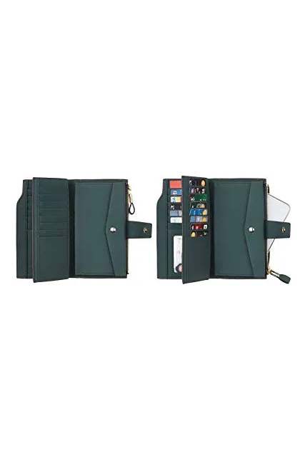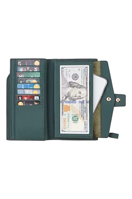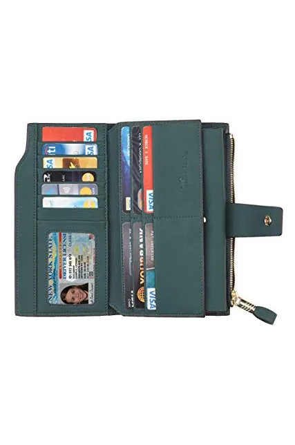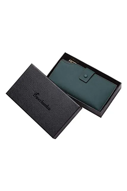 Travelambo Womens RFID Blocking Large Capacity Luxury Waxed Genuine Leather Clutch Wallet Multi Card Organizer