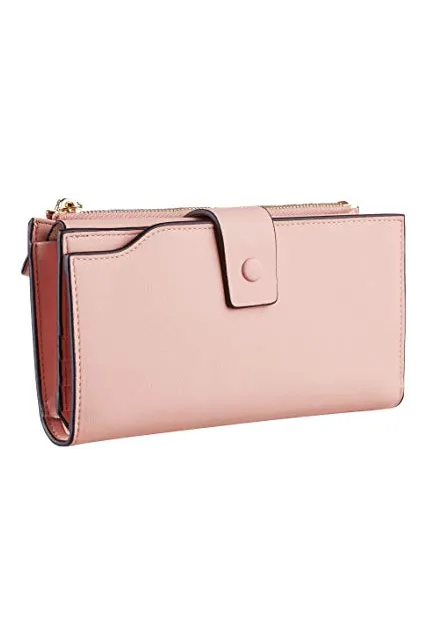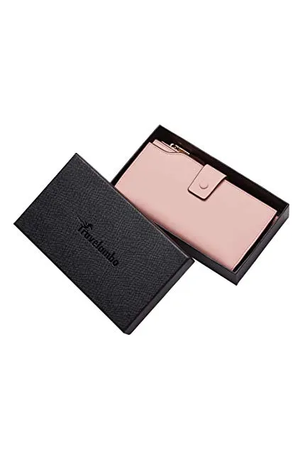 Travelambo Womens RFID Blocking Large Capacity Luxury Waxed Genuine Leather Clutch Wallet Multi Card Organizer
