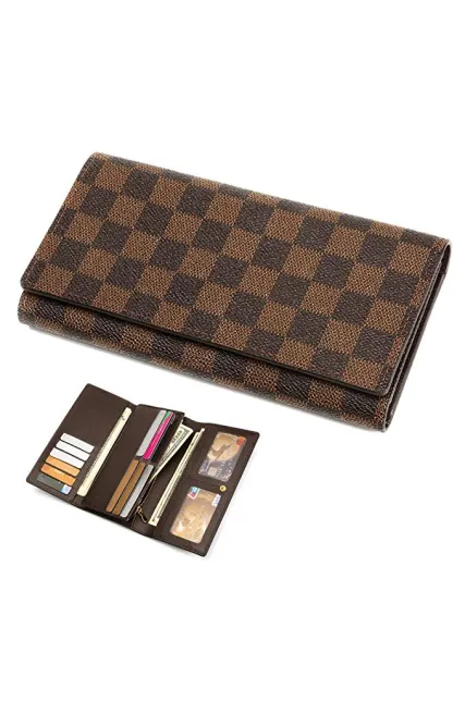 Trifold Wallets for Women Leather Clutch Checkbook Purse RFID Blocking with Credit Card Holder Organizer