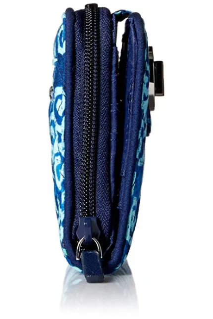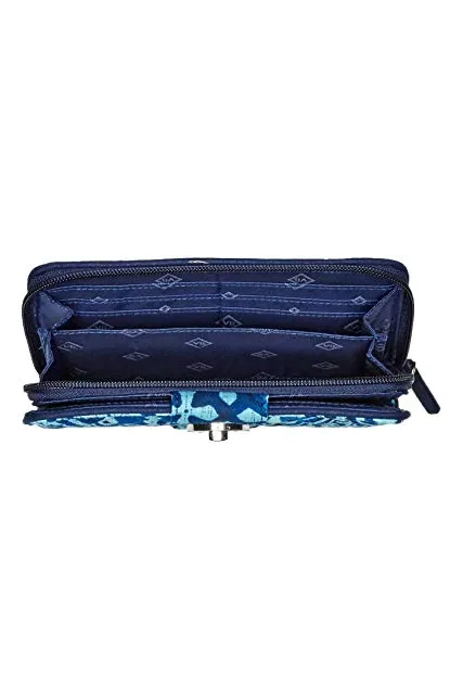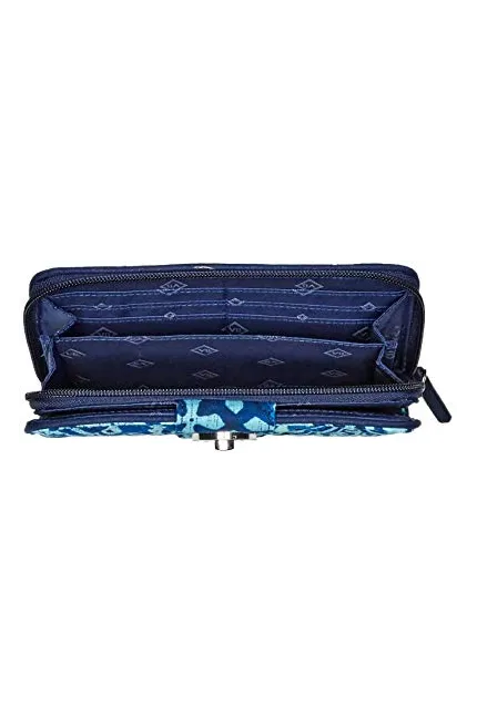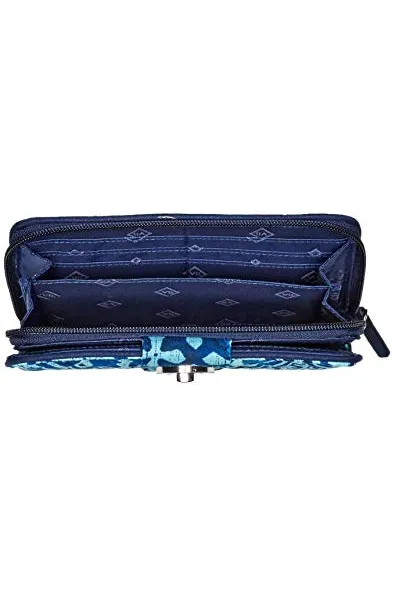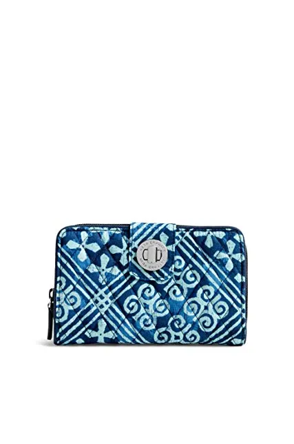 - STAY ORGANIZED: Our RFID Turnlock Wallet comes with 12 card slips to keep you organized, with a separate bill pocket for cash, another slip pocket designed to fit your checkbook, an exterior zippered coin pocket, and turnlock closure