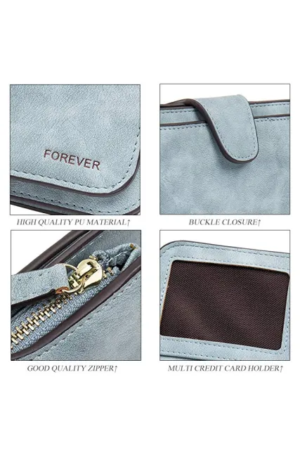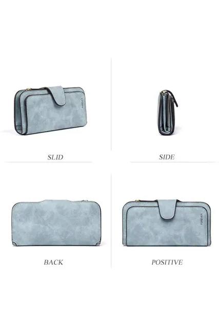 - [HARDWARE & LINING &CLOSURE]: Classic pale gold hardware, the lining material is polyester. Buckle opening closure which makes the pu leather wallet fashionable.