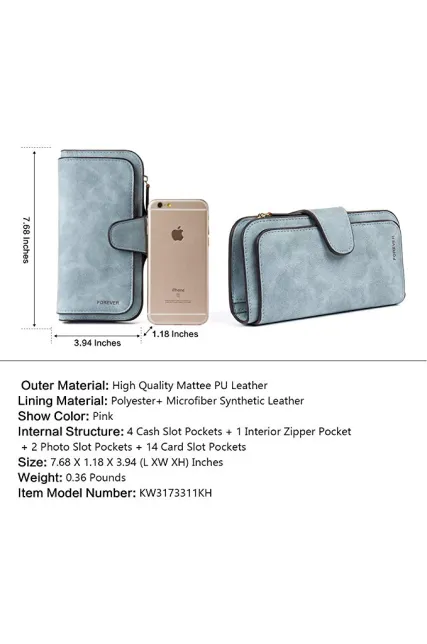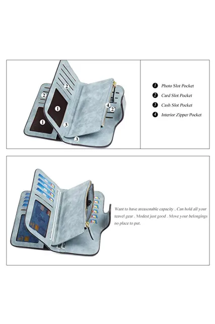 - [INTERNAL STRUCTURE]: 4 Cash Slot Pocket + 1 Interior Zipper Pocket + 2 Photo Slot Pockets + 14 Card Slot Pockets. Practical multi slots wallets are apt to hold cash, credit cards, checks, coin,and other petty things.