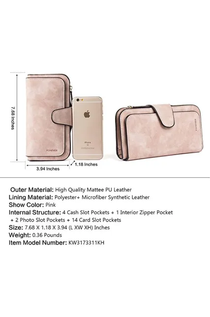 - [INTERNAL STRUCTURE]: 4 Cash Slot Pocket + 1 Interior Zipper Pocket + 2 Photo Slot Pockets + 14 Card Slot Pockets. Practical multi slots wallets are apt to hold cash, credit cards, checks, coin,and other petty things.