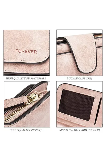 - [HARDWARE & LINING &CLOSURE]: Classic pale gold hardware, the lining material is polyester. Buckle opening closure which makes the pu leather wallet fashionable.