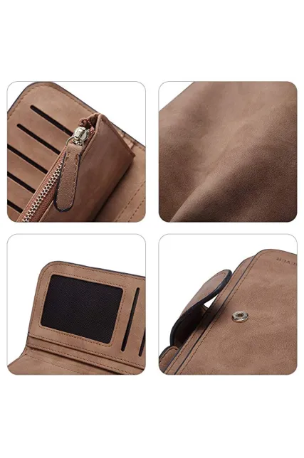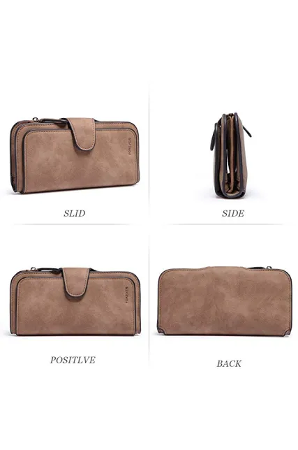 - [HARDWARE & LINING &CLOSURE]: Classic pale gold hardware, the lining material is polyester. Buckle opening closure which makes the leather wallet fashionable.