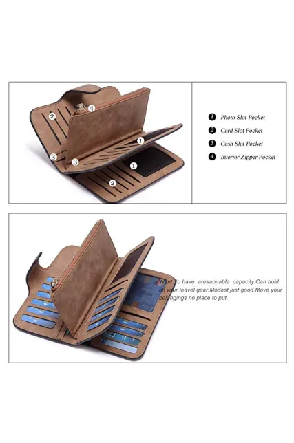 - [INTERNAL STRUCTURE]: 3 Bill Slots + 2 Cash Slots + 1 Interior Zipper Pocket + 2 Photo Slots + 14 Card Slots. Practical multi slots wallets are apt to hold cash, credit cards, checks, coin,and other petty things.