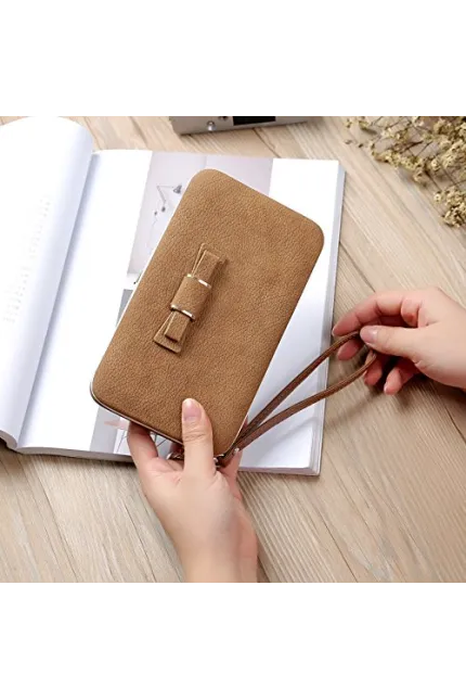 - Material:PU leather / long phone bowknot clutch wallet with large capacity
