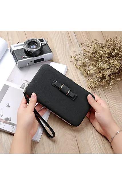 - Material:PU leather / long phone bowknot clutch wallet with large capacity