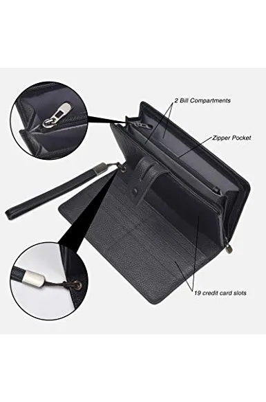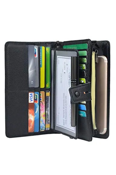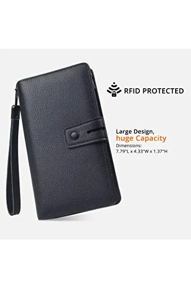 Women's Big Fat Rfid Leather Wristlet Wallet Organizer Large Phone Checkbook Holder with Zipper Pocket