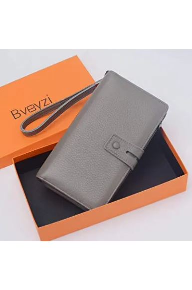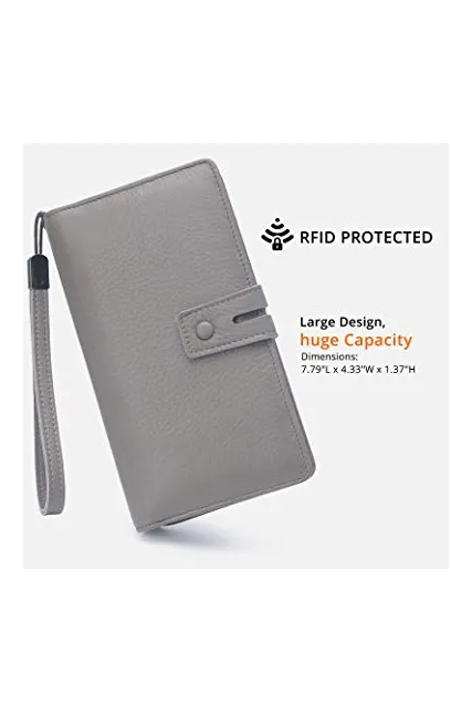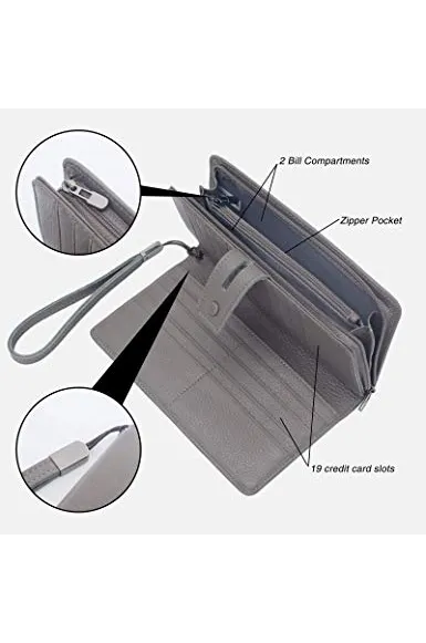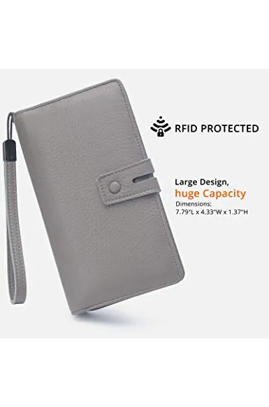 Women's Big Fat Rfid Leather Wristlet Wallet Organizer Large Phone Checkbook Holder with Zipper Pocket