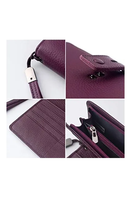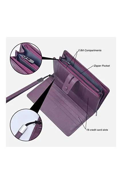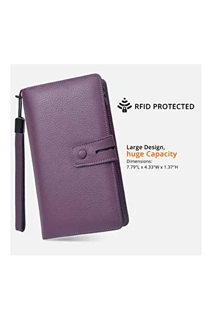 Women's Big Fat Rfid Leather Wristlet Wallet Organizer Large Phone Checkbook Holder with Zipper Pocket