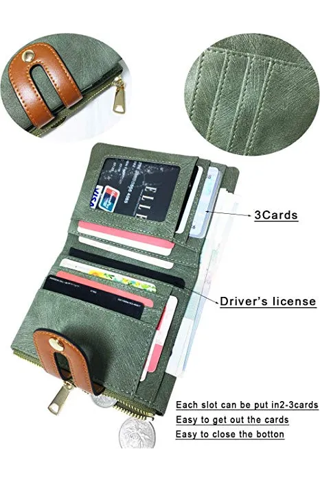 Women's Rfid Small Bifold Leather Wallet Ladies Mini Zipper Coin Purse id card Pocket,Slim Compact Thin