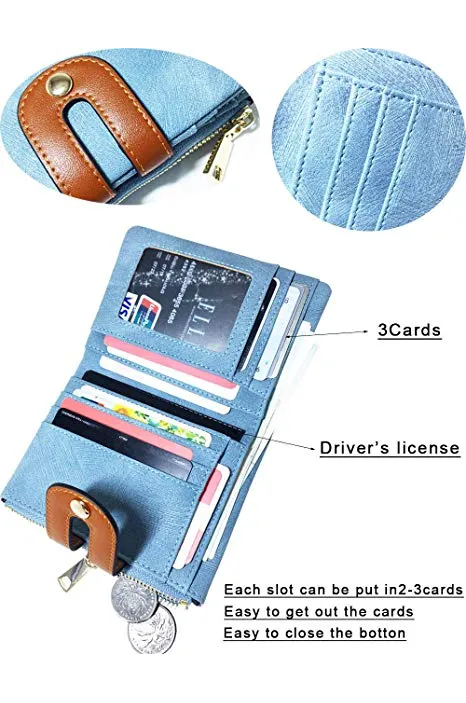 Women's Rfid Small Bifold Leather Wallet Ladies Mini Zipper Coin Purse id card Pocket,Slim Compact Thin