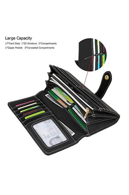 - Pockets: 17 Card Slots, 1 ID Windows, 3 Slip Bill Pockets, 1 Zipper Compartment, 3 Hidden Pockets