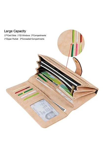 - Pockets: 17 Card Slots, 1 ID Windows, 3 Slip Bill Pockets, 1 Zipper Compartment, 3 Hidden Pockets