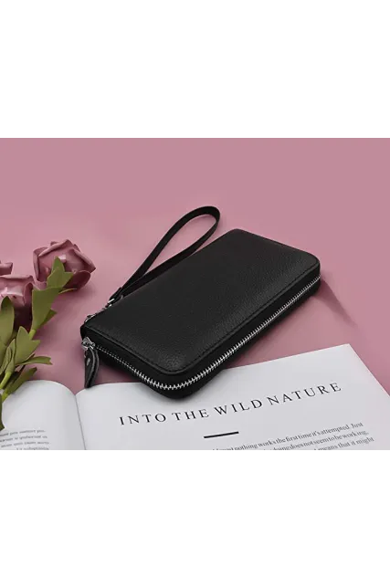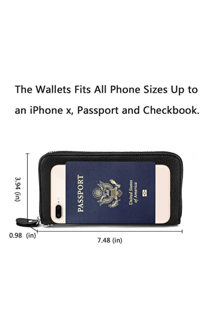 Womens Wallet RFID Blocking Genuine Leather Zip Around Wallet Clutch Wristlet Travel Long Purse for Women