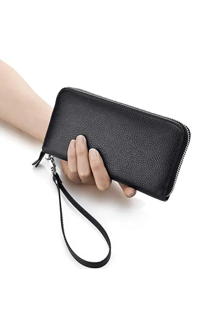 - PRACTIAL DESIGN - 8 interior credit card slots, 2 bill pockets, 1 zip coin pocket, 1 phone compartment, 2 open compartment for banknotes, 1 removable leather wristlet strap.