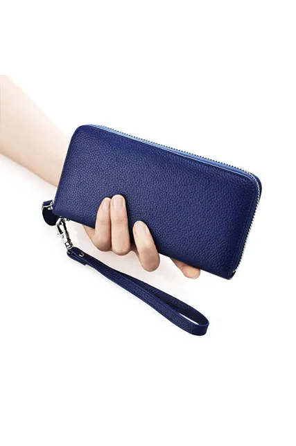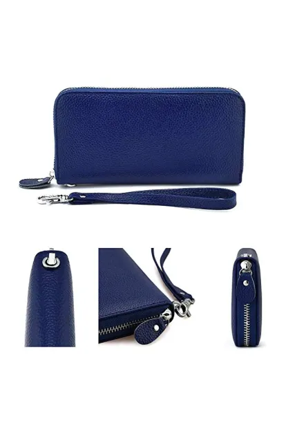 - PRACTIAL DESIGN - 8 interior credit card slots, 2 bill pockets, 1 zip coin pocket, 1 phone compartment, 2 open compartment for banknotes, 1 removable leather wristlet strap.