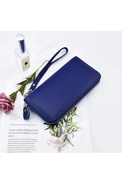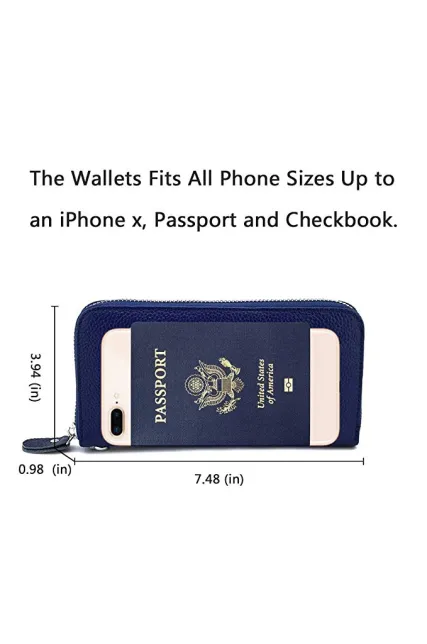 Womens Wallet RFID Blocking Genuine Leather Zip Around Wallet Clutch Wristlet Travel Long Purse for Women