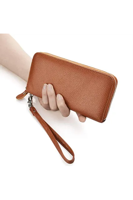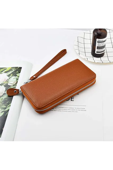 Womens Wallet RFID Blocking Genuine Leather Zip Around Wallet Clutch Wristlet Travel Long Purse for Women