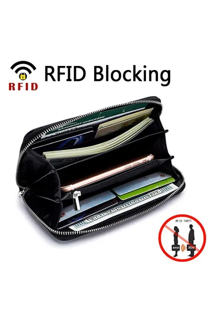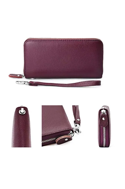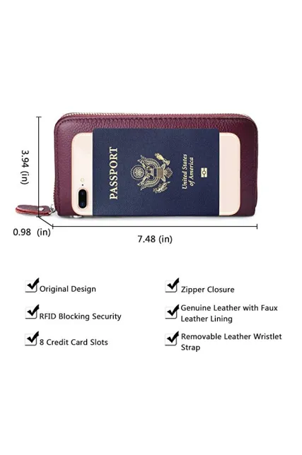 Womens Wallet RFID Blocking Genuine Leather Zip Around Wallet Clutch Wristlet Travel Long Purse for Women