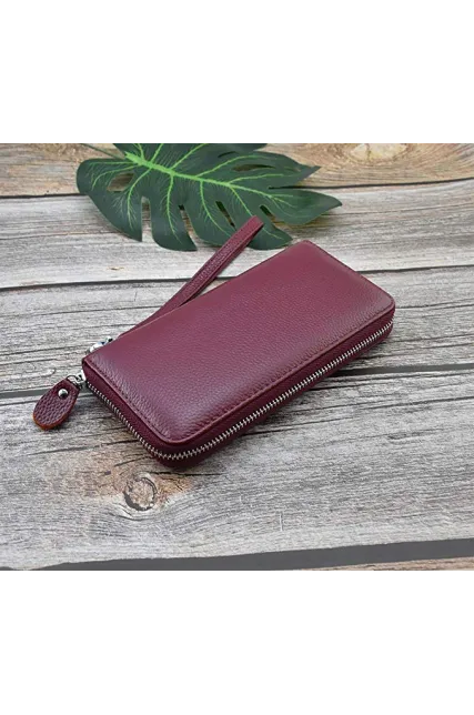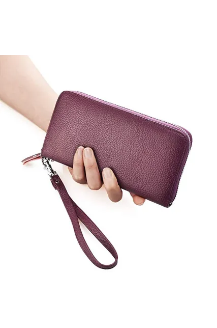 - PRACTIAL DESIGN - 8 interior credit card slots, 2 bill pockets, 1 zip coin pocket, 1 phone compartment, 2 open compartment for banknotes, 1 removable leather wristlet strap.