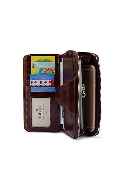 Yafeige Large Luxury Women's RFID Blocking Tri-fold Leather Wallet Zipper Ladies Clutch Purse