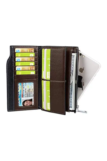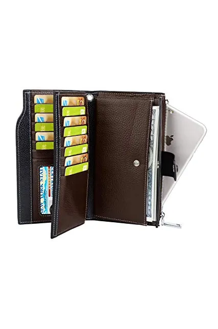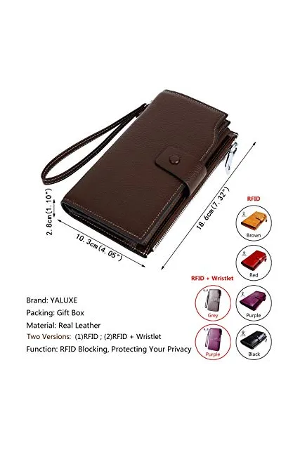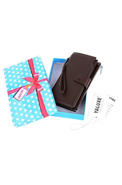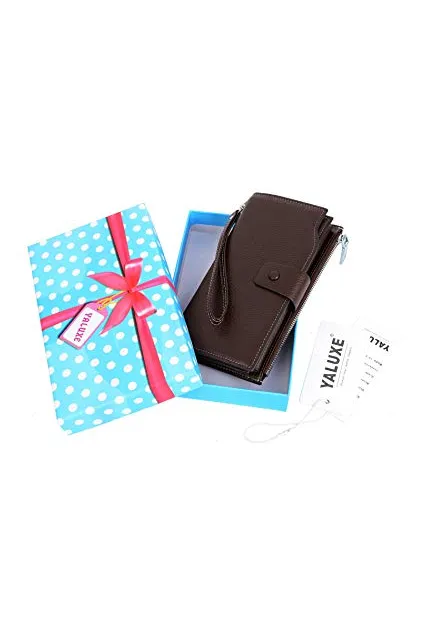YALUXE Genuine Leather Wallet Women's RFID Blocking Large Capacity Luxury Wax Clutch Multi Card Organizer