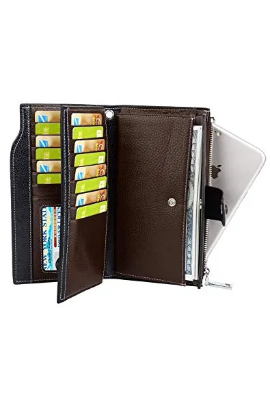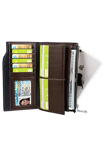- Large capacity due to its 21 card slots, including 1 ID window. 4 full-length compartments and a zippered pocket. Keep your credit cards, cash, coins, notes, receipts, cheekbook and your cellphone well organized.