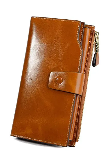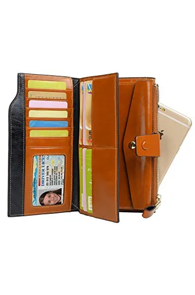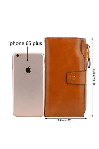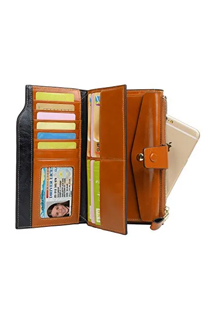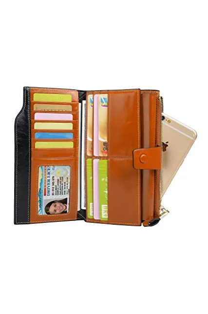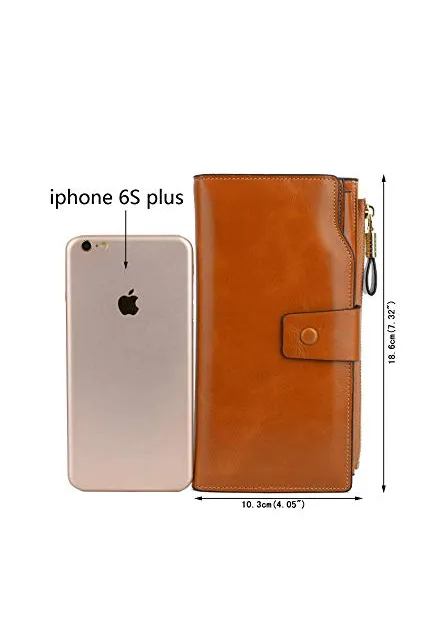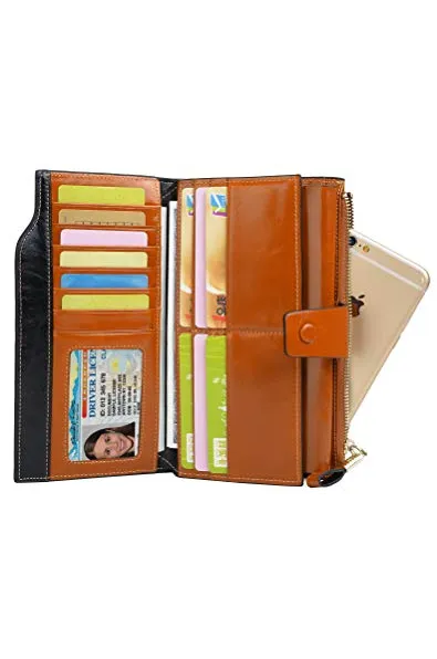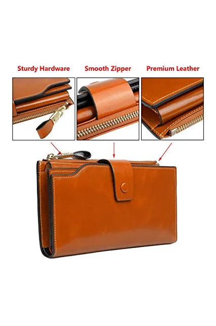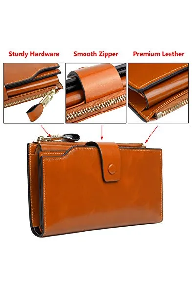 YALUXE Genuine Leather Wallet Women's RFID Blocking Large Capacity Luxury Wax Clutch Multi Card Organizer