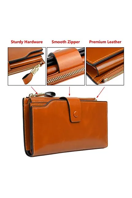 ➤HIGH QUALITY: Advanced Grained leather with wax finish, feels luxury and comfortable, which will look even better after using for a long time. Gold-color hardware, heavy duty zipper and detailed contrast stitching brightens up the wallet