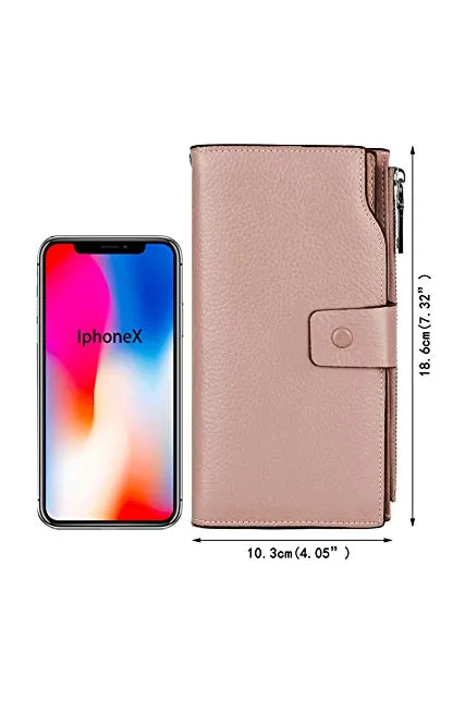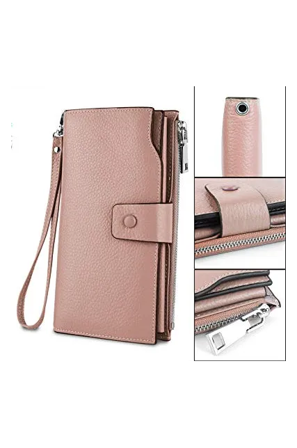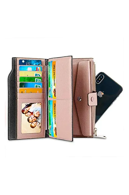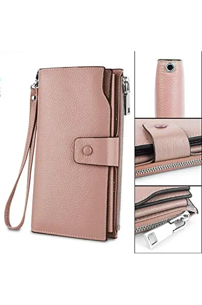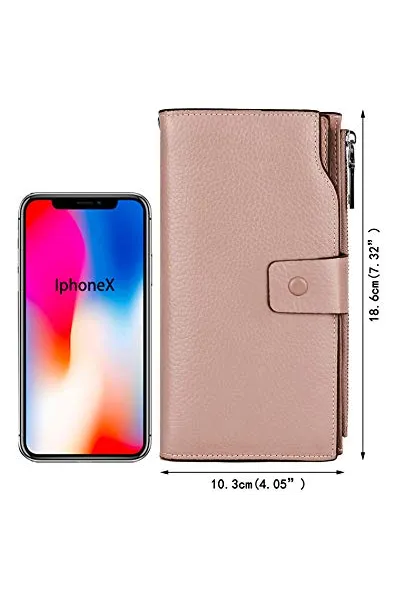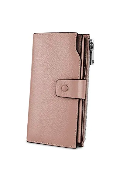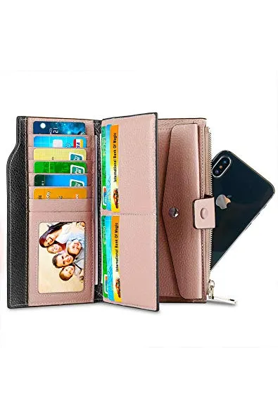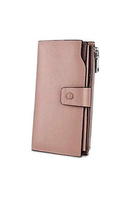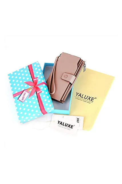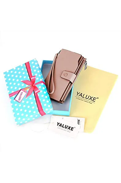YALUXE Genuine Leather Wallet Women's RFID Blocking Large Capacity Luxury Wax Clutch Multi Card Organizer