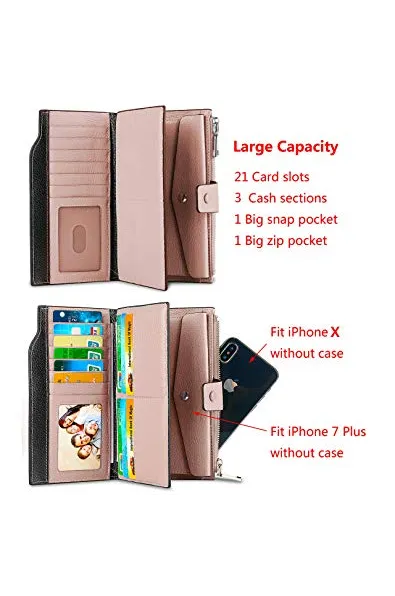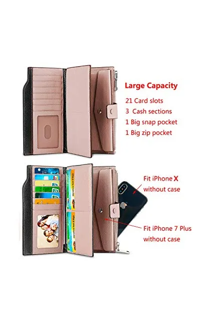 - Large capacity due to its 21 card slots, including 1 ID window. 4 full-length compartments and a zippered pocket. Keep your credit cards, cash, coins, notes, receipts, cheekbook and your cellphone well organized.
