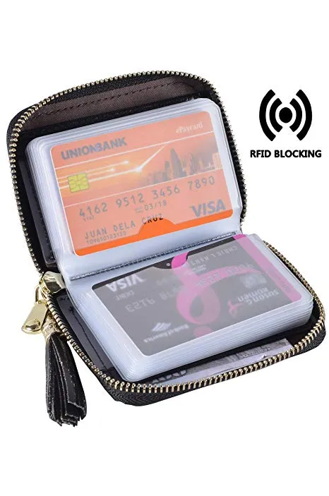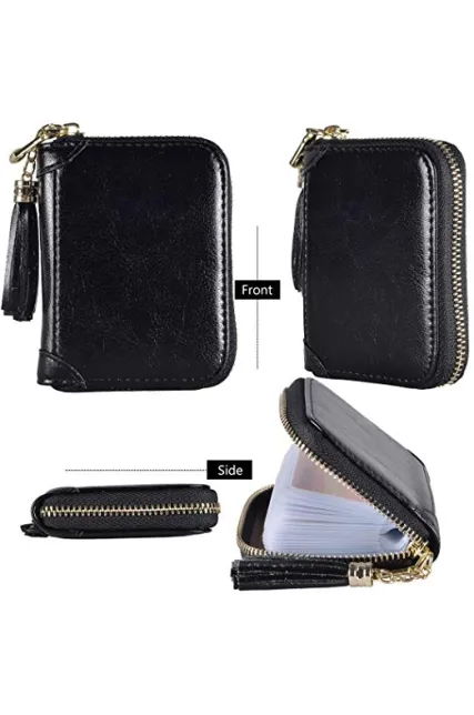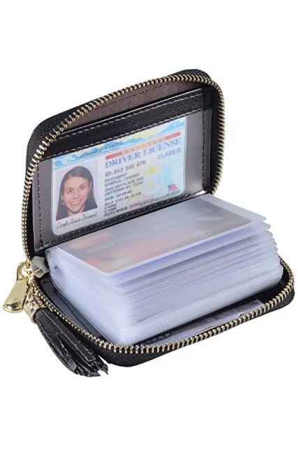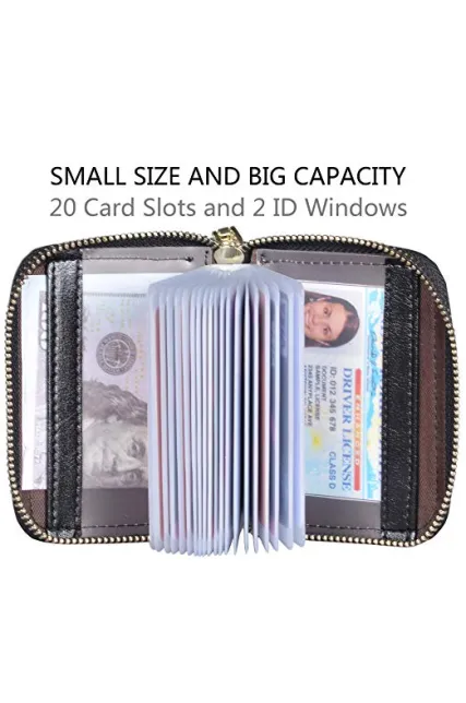 - Structure: 20 Card Slots and 2 ID Windows Zip Closure. Big Capacity Meets Your Daily Use, Such As Credit Cards,Debit Cards,ID Cards,Cash,Coins and so on.