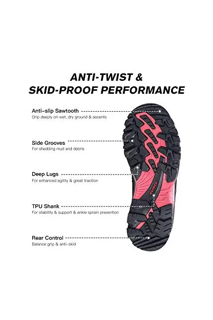 - Anti-skid Performance: Rubber outsole with varied and deep lugs for high traction to enhance grip over wet and dry surface with ease; TPU supportive shank adds stability and support, preventing ankle sprain