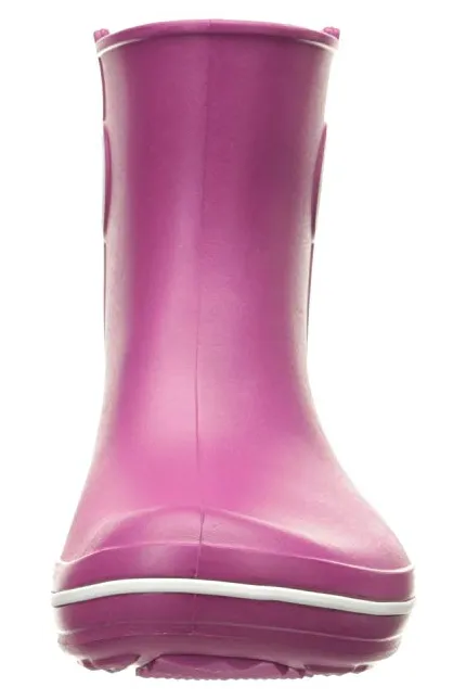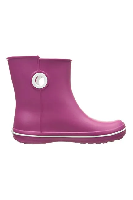 - Waterproof boot featuring contrast pull circles on sides and decorative logo button at top shaft