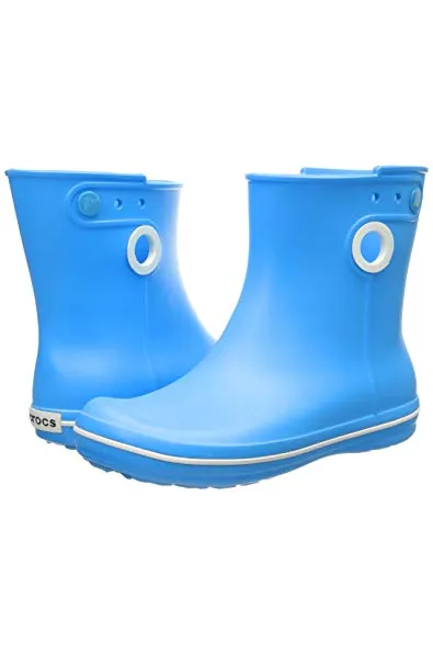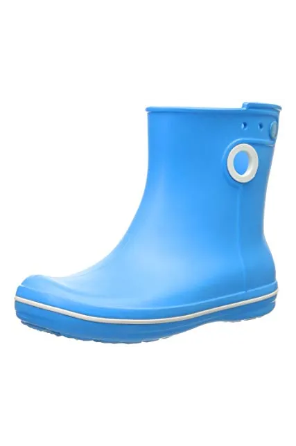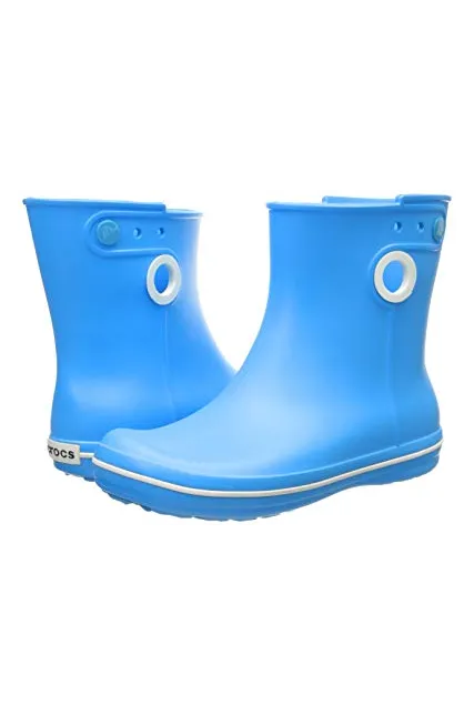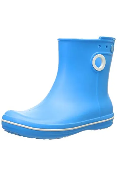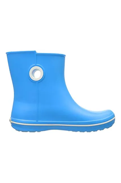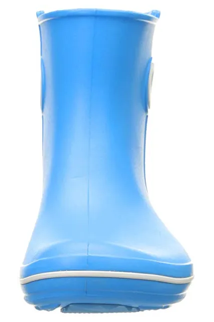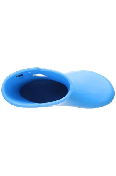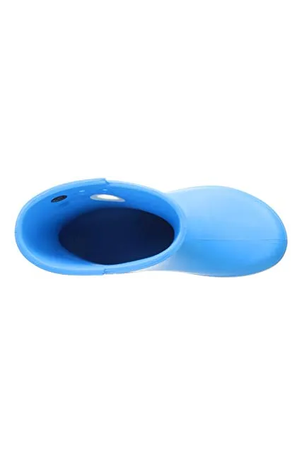 - Waterproof boot featuring contrast pull circles on sides and decorative logo button at top shaft