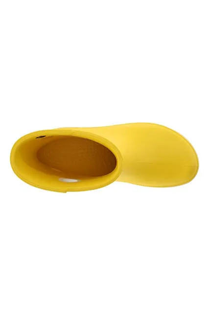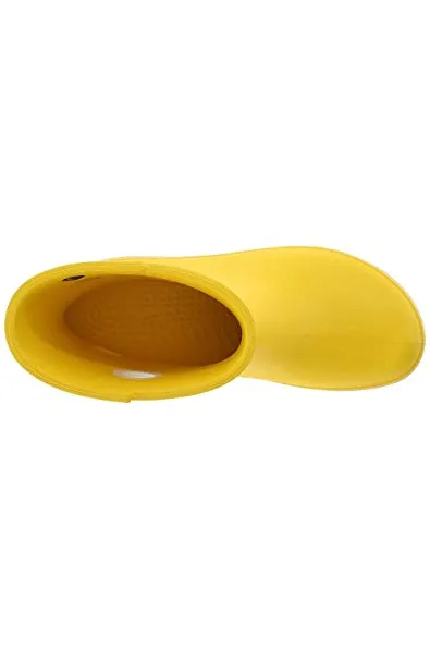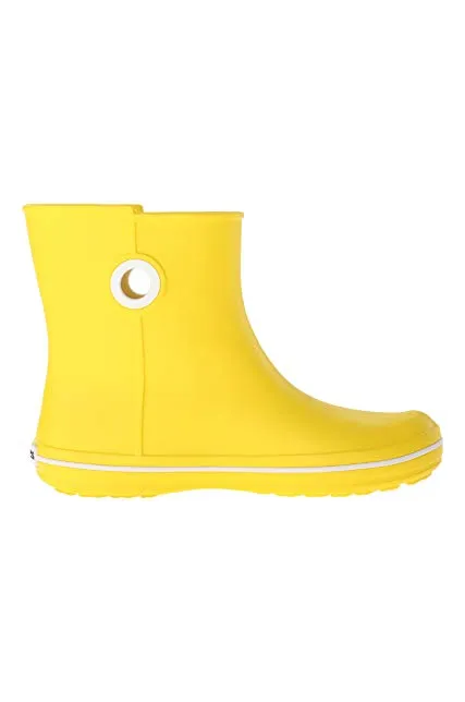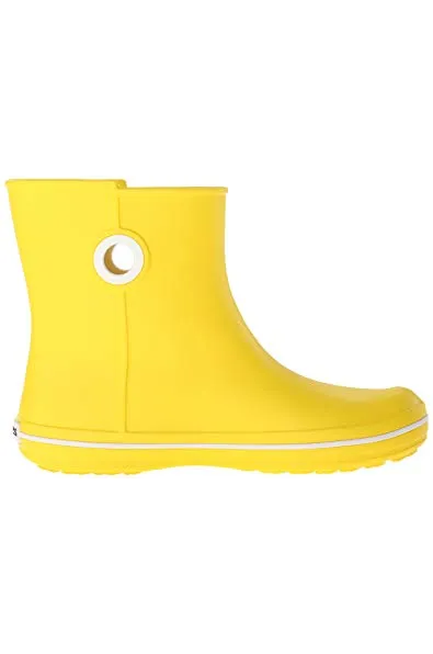 - Waterproof boot featuring contrast pull circles on sides and decorative logo button at top shaft