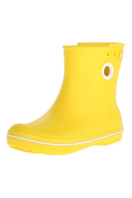 - Waterproof boot featuring contrast pull circles on sides and decorative logo button at top shaft