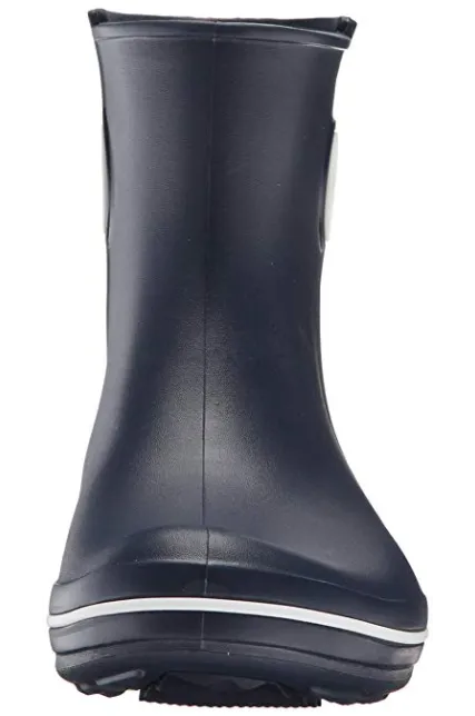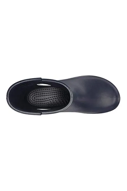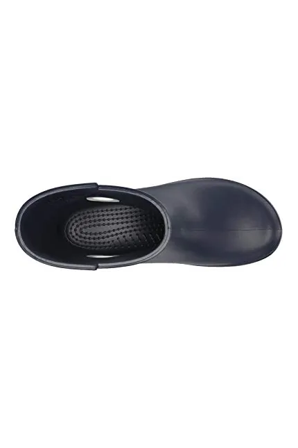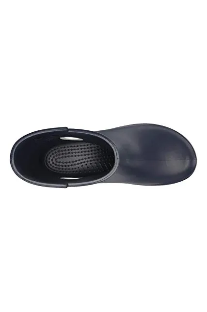 - Waterproof boot featuring contrast pull circles on sides and decorative logo button at top shaft