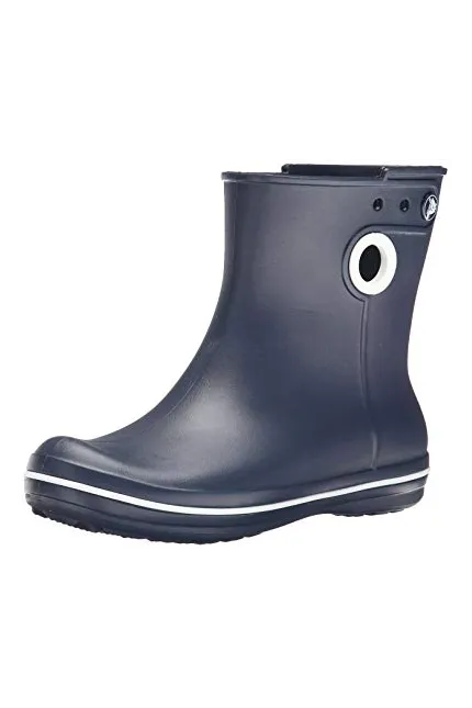 - Waterproof boot featuring contrast pull circles on sides and decorative logo button at top shaft