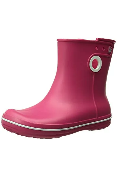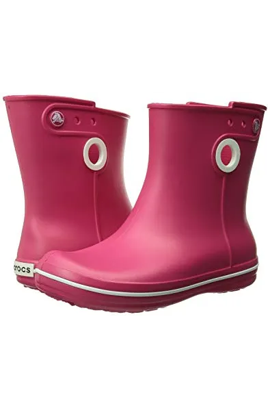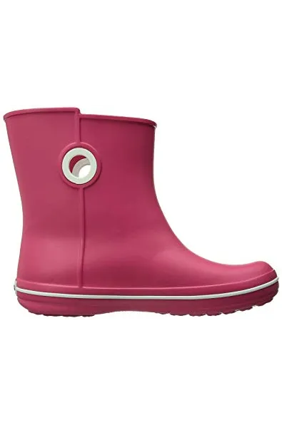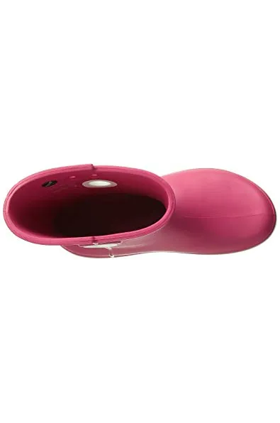 - Waterproof boot featuring contrast pull circles on sides and decorative logo button at top shaft
