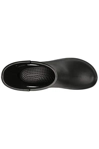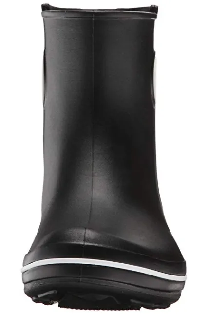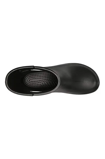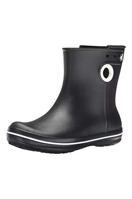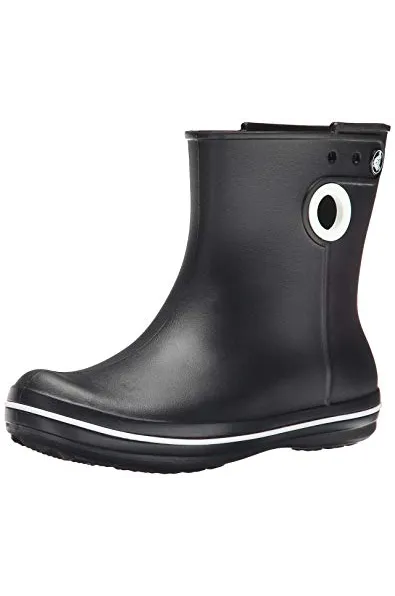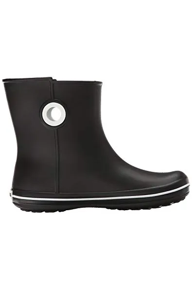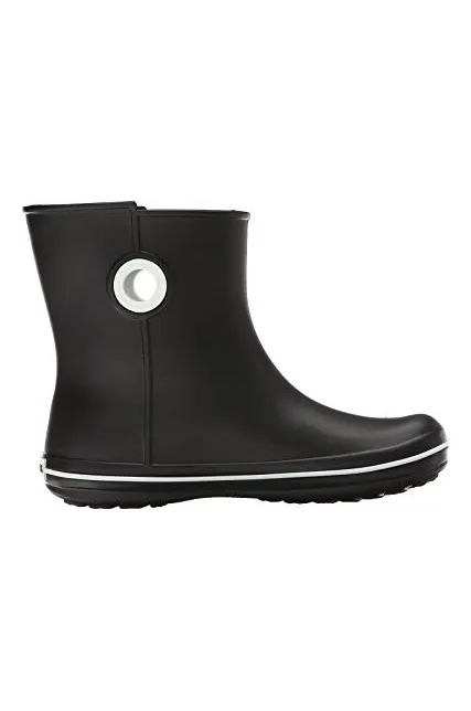 - Waterproof boot featuring contrast pull circles on sides and decorative logo button at top shaft